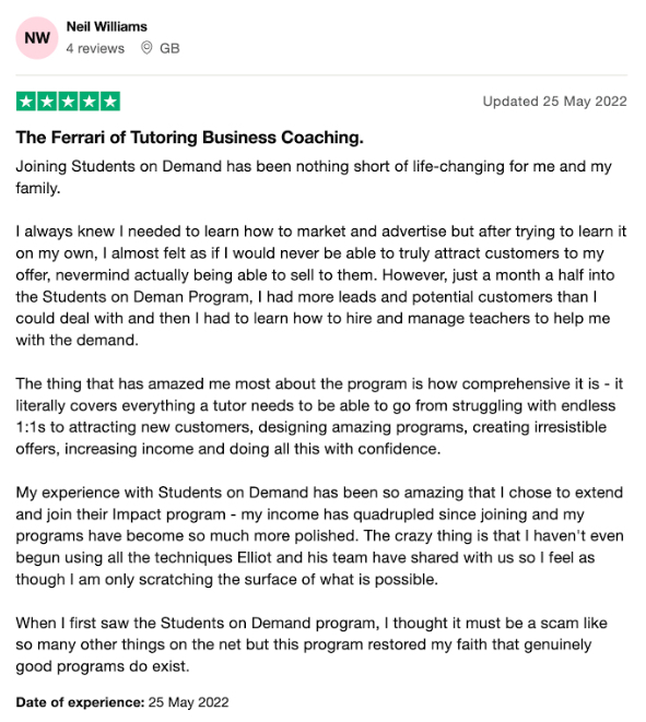 We'll even show you the exact audience targeting to set up that our current clients use to turn on the taps with parents/students reaching out for tutoring online.