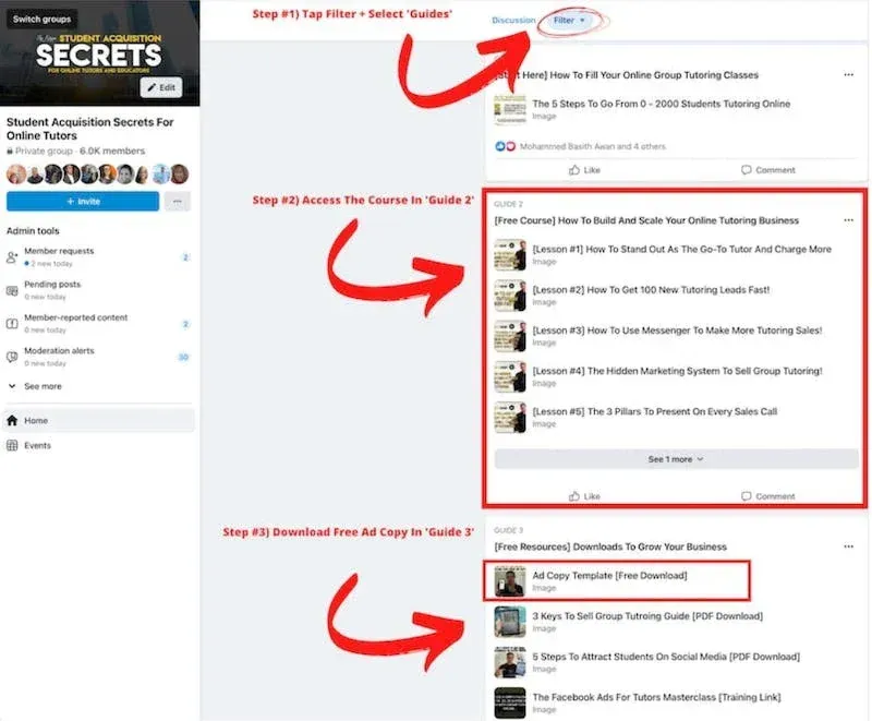 Click the button below to get join our group which includes the 5 steps to 2000 students case study and a free course (30+ hours of content) so you can master student acquisition for online tutoring.